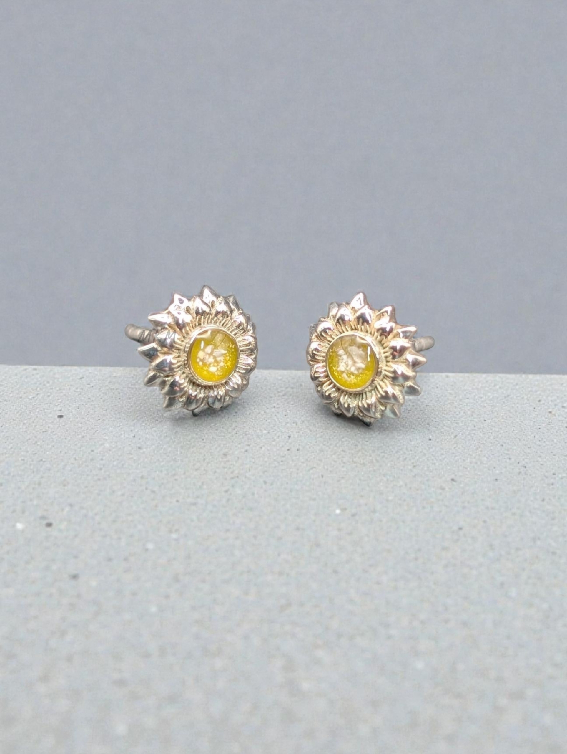 These beautiful 925 Silver Sunflower stud earrings are approximately 8mm overall with 4mm bezel.